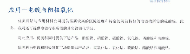 品 牌:優(yōu)美科硫酸鎳