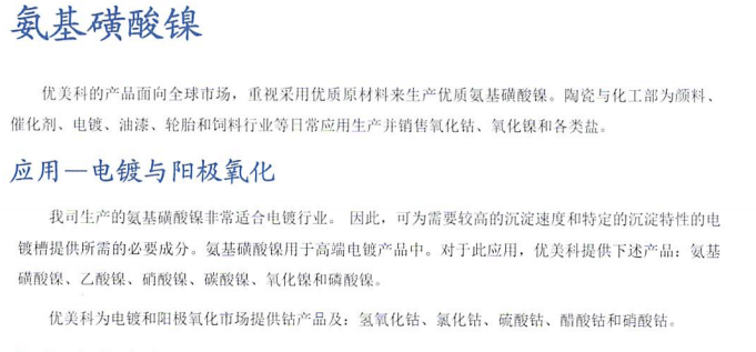 品 牌:優(yōu)美科氨基磺酸鎳
