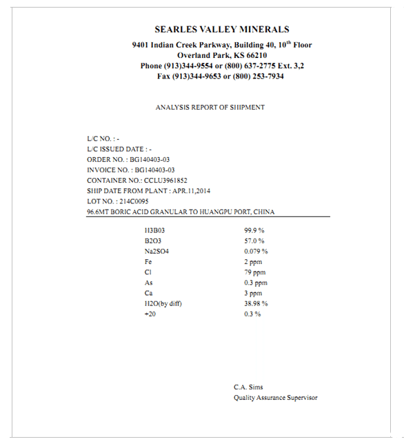 三象硼酸的檢測(cè)報(bào)告