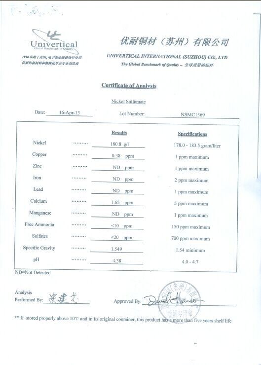 品 牌:美國優(yōu)耐氨基磺酸鎳