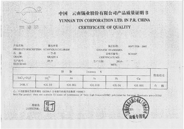 用 途:用于染料, 香料, 制鏡, 電鍍等工業(yè);并用作超高壓潤滑油, 漂白劑 ,用作還原劑、媒染劑、脫色劑和分析試劑,用于銀、砷、鉬、汞的測定